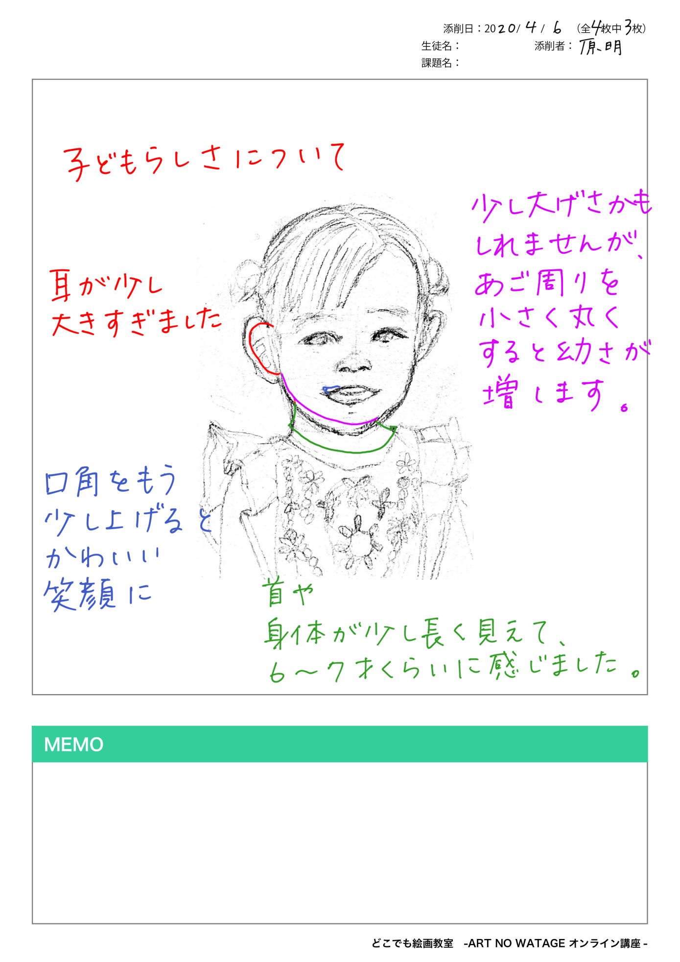 便利なもので、最近はデジタルでもアナログ風に描くことができるので、皆さんから送っていただいた絵の画像に、あまり違和感なく自然に加筆することができる時代になりました。通信講座とはいえ、実際の絵画教室と遜色ない指導レベルです。