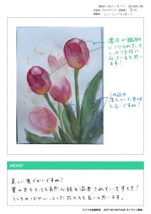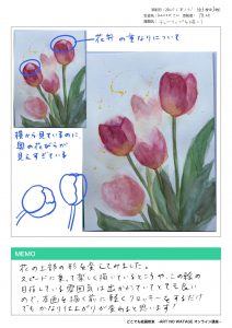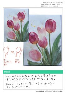 「チューリップ」を描こう 2020.06.25 概要 花を絵に描くのはなかなか難しいですが、チューリップはかなり描きやすい方だと思います。 形もけっこう簡単ですし、かたまりになっているので、花びら一枚一枚のヒラヒラ感もいらないです。 お花を練習するのならチューリップからがおすすめです。 講師作品 上記3作品のレッスンをご覧いただけます。 参考画像 下記からレッスンをご視聴ください 2020.08.16 チューリップを描こう(透明水彩編) ... 2020.08.16 チューリップを描こう(アクリル編) ... 2023.03.01 水彩色鉛筆で「チューリップ(ピンク)」の絵の描き方 ... 生徒作品 みなさんの作品は、こちらに掲載していきます。 (掲載OKの場合は、作品投稿フォームの掲載OKにチェックを入れてください。) Tweet Share Hatena RSS Pin it